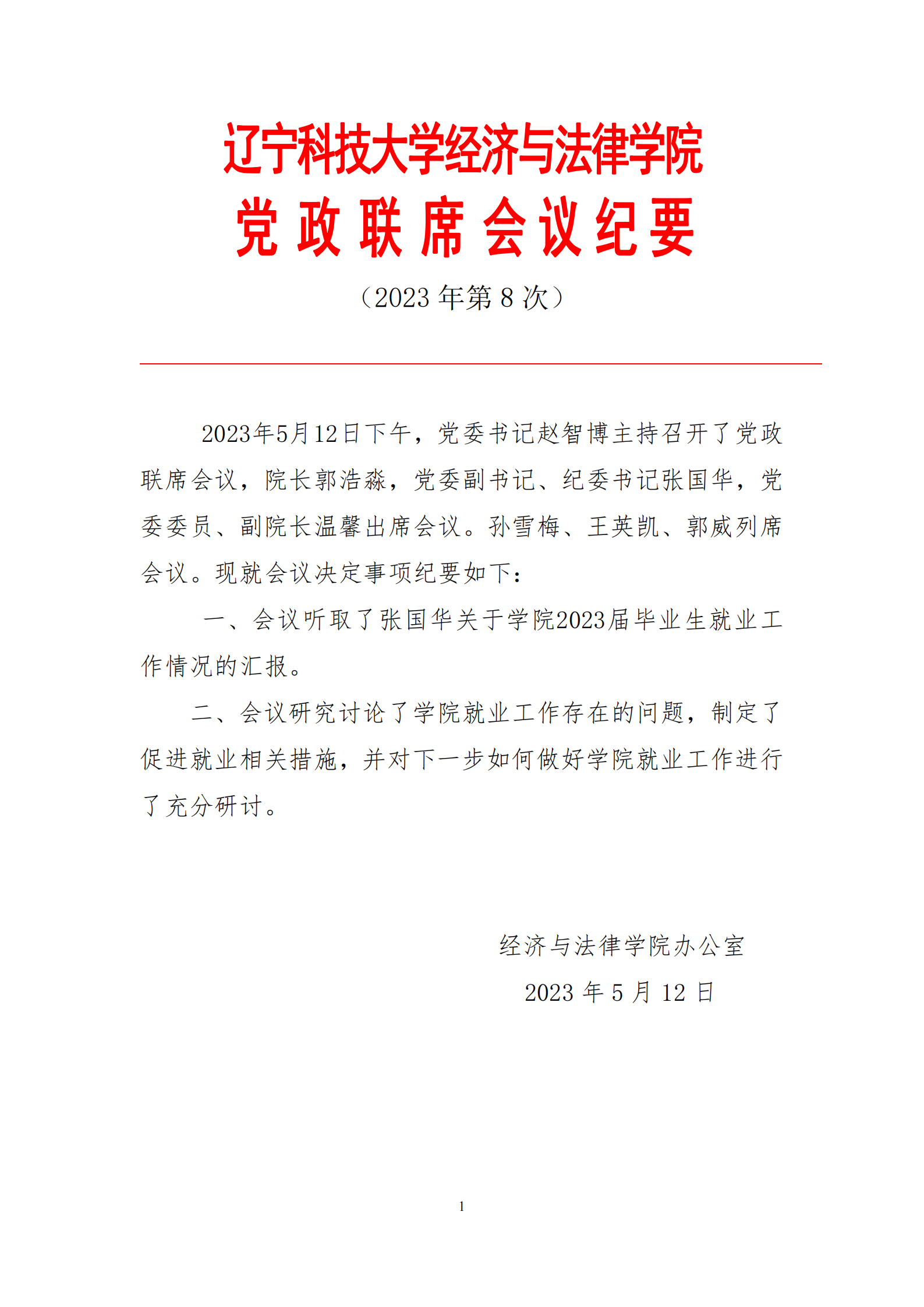 安博官网线上平台经济与法律学院党政联席会会议纪要(2023年第8次)