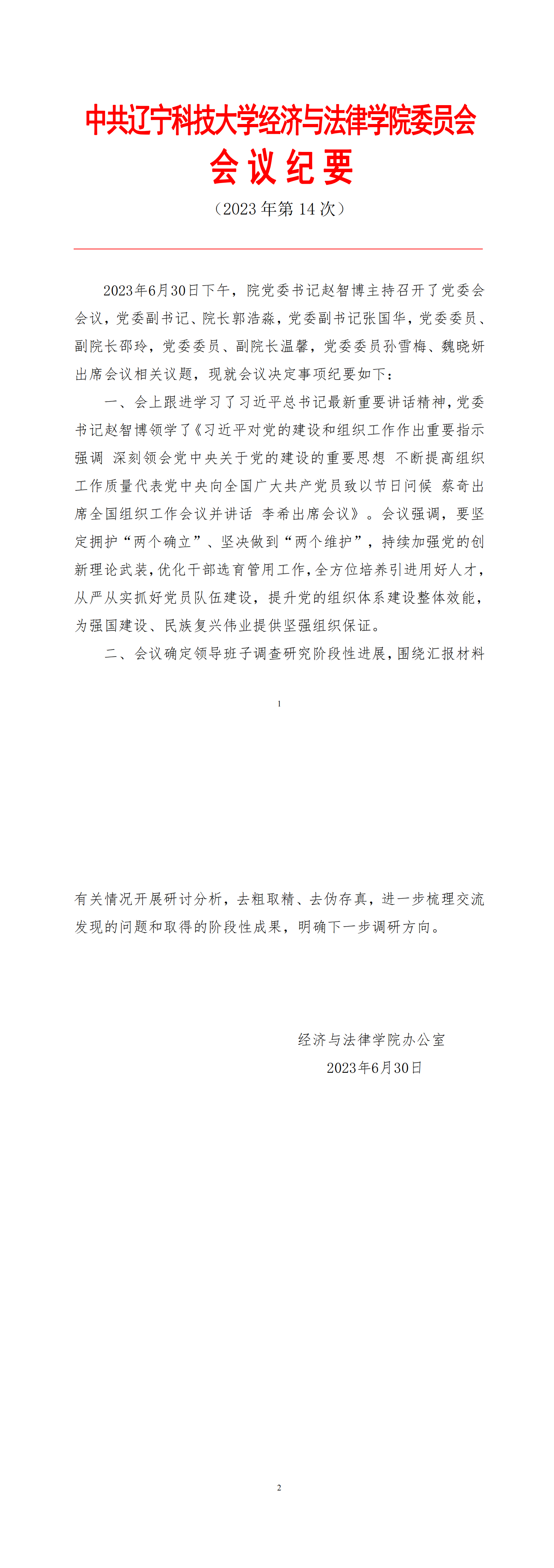 中共安博官网线上平台经济与法律学院委员会会议纪要(2023年第14次)