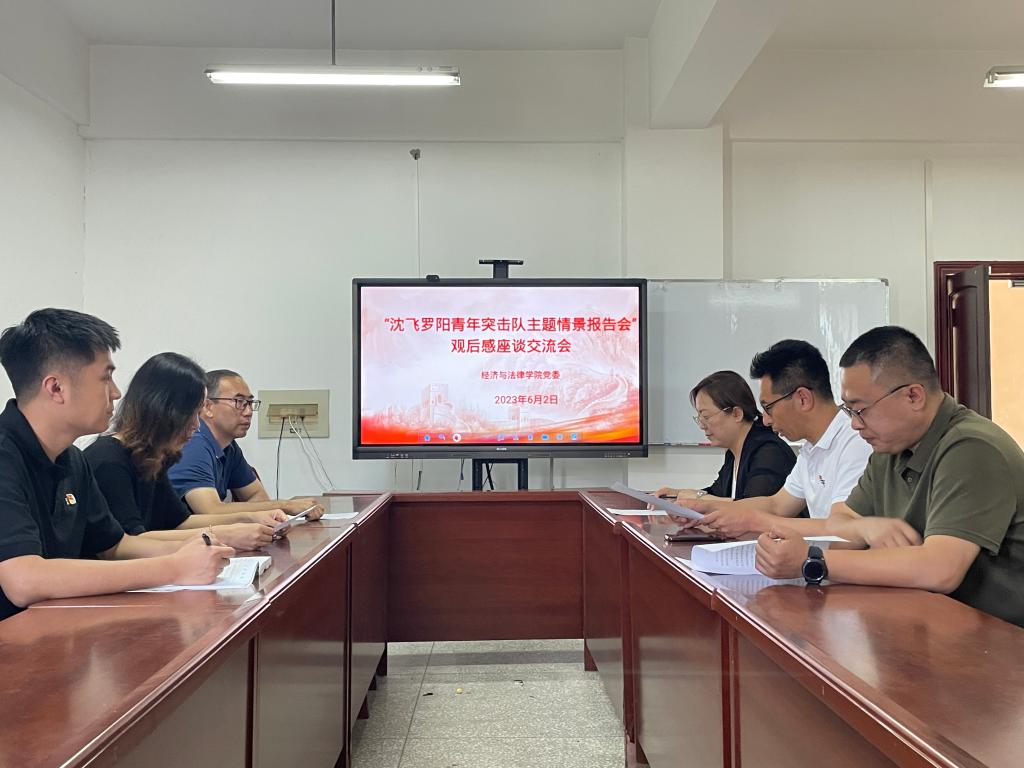 2023年6月2日,安博官网线上平台经济与法律学院在博识楼A313召开观看“沈飞罗阳青年突击队主题情景报告会”观后感座谈交流会。会议由学院党委书记赵智博主持,学院领导班子全体成员和辅导员参加。