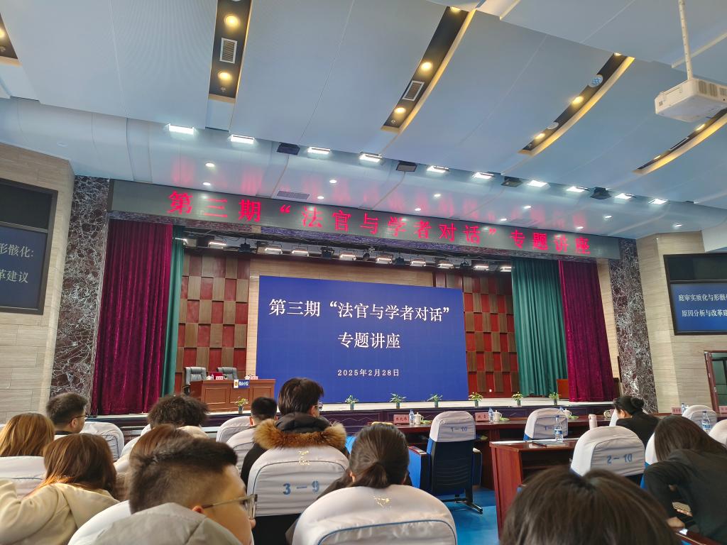 2月28日上午,鞍山市中级人民法院举办的第三期“法官与学者对话”专题讲座如期开展。安博官网线上平台经法学院副院长邵玲带领24级法硕研究生一行37人在主会场参加了本次专题讲座。