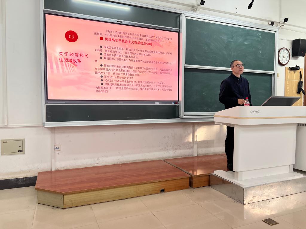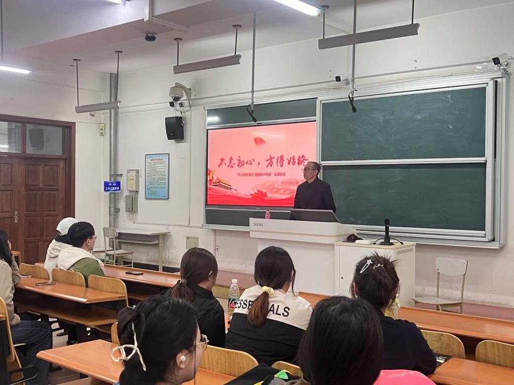 辅导员以“学习党的二十届三中全会精神”为主题,传达党的先进思想,先进理论。辅导员指出党的二十届三中全会的核心内容,涵盖政治、经济、文化、社会、生态文明等各个方面,每一项内容都是对我国社会主义现代化建设规律的深化认识,都是对习近平新时代中国特色社会主义思想的丰富发展。全会进一步强调了党的领导核心地位,不断完善党的领导制度体系,这为中国式现代化提供了坚实的政治保障。同时,会议着重指出要推动高质量发展,加快构建新发展格局,让我国经济发展更具活力、更具竞争力。最后,辅导员表示,希望同学们不断提高自己的理论素养,用科学理论武装头脑,指导实践,以更加坚定的信念投身到全面建设社会主义现代化国家的伟大实践中。
