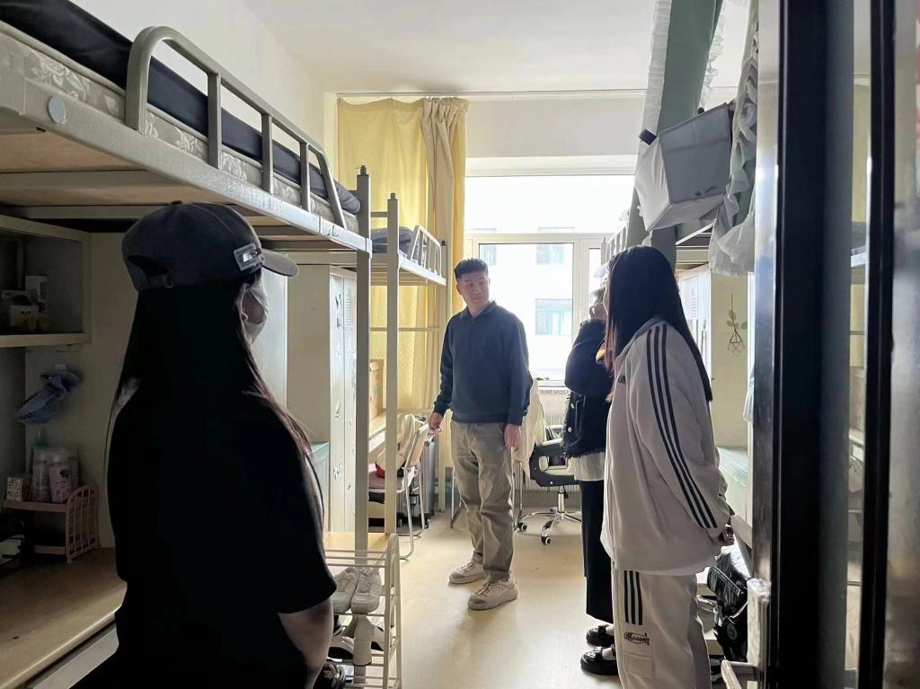 走访期间,辅导员与学生亲切交流,深入了解学生的日常生活和学习状况,倾听学生的心声并针对性地提供帮助和指导。走访过程中,辅导员们检查和解决了学生宿舍中存在的电源线、数据线凌乱等潜在安全隐患,并引导学生进一步提升安全意识,提醒学生离开寝室一定要断电,注意人身财产安全、消防安全和宿舍用水用电安全,自觉遵守宿舍管理规章制度。同时,辅导员们强调,宿舍是学生重要的生活场所,寝室卫生是打造良好居住环境的根本,提醒同学们爱护宿舍环境,时常清理卫生、整理物品,保持地面、桌面、床铺干净整洁,做到每天开窗通风,保证室内空气清新。最后,辅导员鼓励学生明确学习目标,调整好作息时间,养成健康文明的生活习惯,以积极向上的态度面对生活和学习,共同营造良好的寝室氛围。同学们纷纷表示将立足万物复苏的新起点,不负老师期盼,以更饱满的热情投入到学习和生活中。