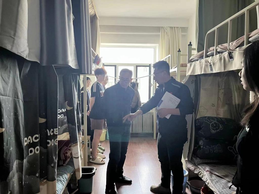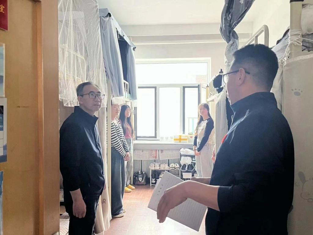 为促进经法学子养成良好生活习惯,保障学生寝室安全,创建和谐整洁的寝室环境,4月14日,学院党委书记赵智博、党委副书记张国华、学办主任齐艳萍、团委副书记张鹏飞4位辅导员深入学生寝室,检查寝室安全及卫生情况。
