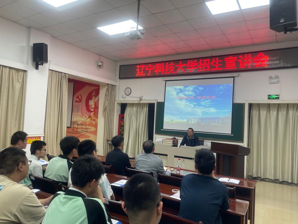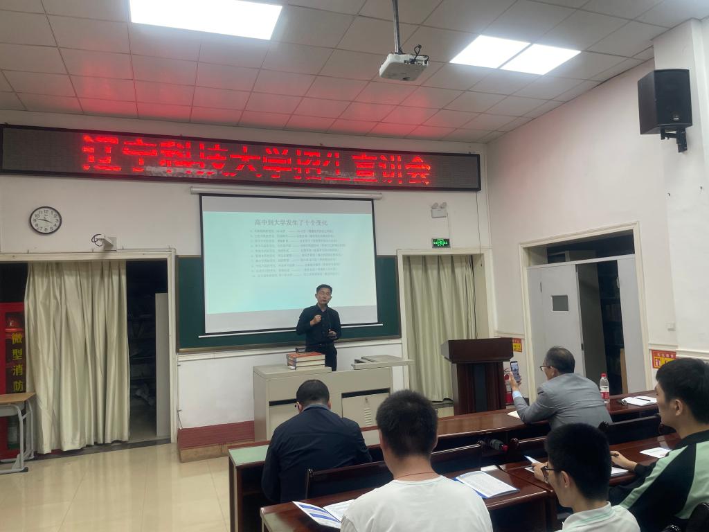 为更好地推进招生工作有序开展,5月29日,辽科大招生与就业处指导教师王旭,电信学院党委书记王会立,经法学院院长郭浩淼、党委副书记张国华、团委副书记张鹏飞一同前往鞍山市矿山高级中学开展招生宣讲会。矿山高级中学副校长戴艳明出席宣讲会,高三年级学生代表近200人参加会议。