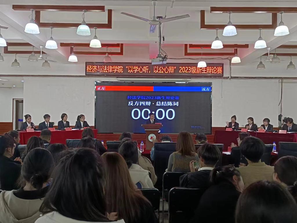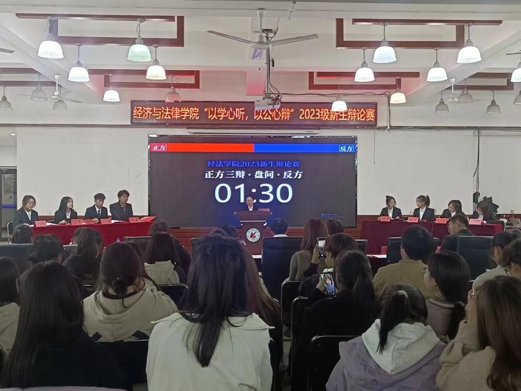 11月2日晚,经法学院于明德楼大学生活动中心举办“以学心听,以公心辩”主题辩论赛。本次辩论赛由金融23-2班白江悦主持,安博官网线上平台辩论队负责人、思辨社社长徐延伟、经法学院辩论队队长韩雨彤、副队长郭聪皓以及经法学院分团委副书记、学生会主席团成员和各部门负责人出席活动并担任评委,2023级全体学生参加本次活动。
