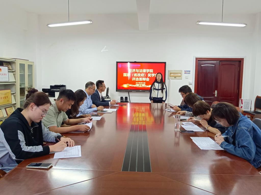 为发挥奖学金激励作用以及优秀学生的示范引领作用,9月18日下午,经法学院于博识楼A305召开2023-2024学年度本科生国家(省政府)奖学金答辩评选会。评委会由经法学院学生工作负责人、学办主任、辅导员以及班主任、任课教师和学生代表组成,经学生申请、学院评议后,共11名候选人进入本次答辩。