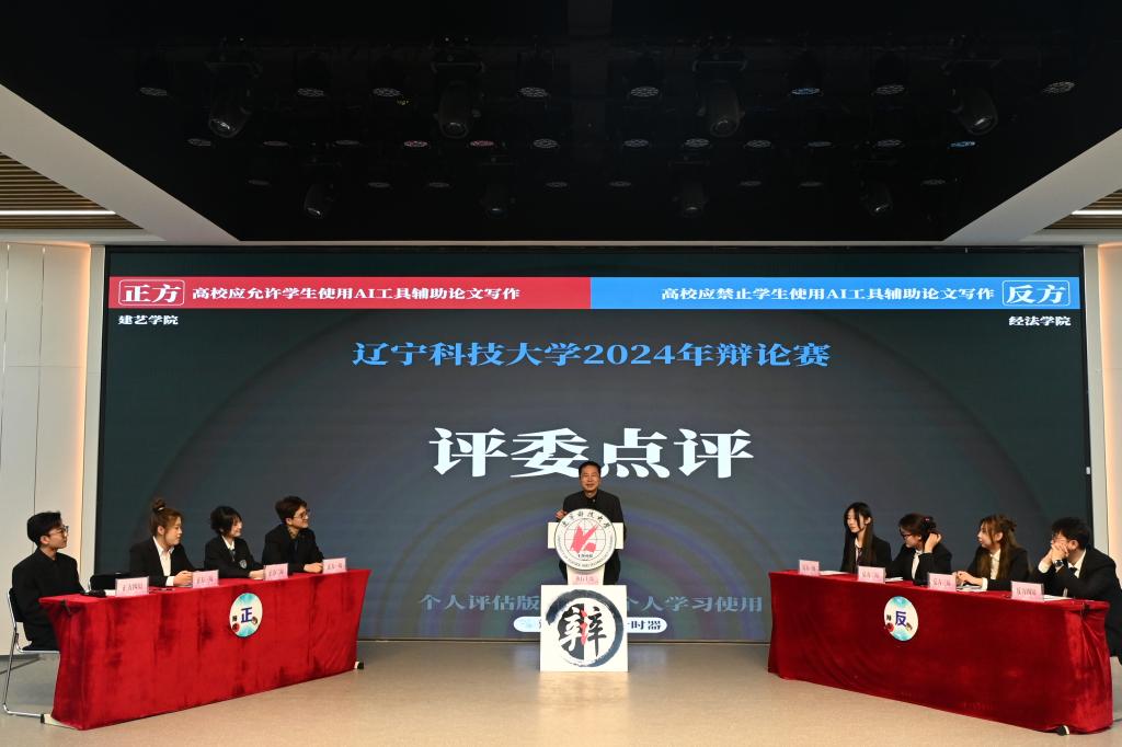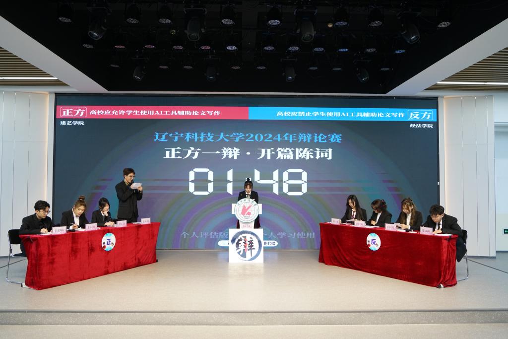 辩论过程中,双方辩手以“高校应允许/禁止学生使用AI工具辅助论文写作”为辩题,我方一辩选手以具体实例和相关领域的专业研究结果为依据,通过分析学生使用AI工具辅助论文写作所带来的一系列弊端有力地阐明了“高校应禁止学生使用AI工具辅助论文写作”的己方观点。同时,我院辩手针对对方论述中出现的漏洞展开反击,现场气氛热烈,火花四溅。小结环节,我方辩手在总结己方观点的同时结合现场情况,以更深层次的解析将整场辩论推向高潮,准确而有力的展现了我方观点。最终,经过评委们的严谨评审,经法学院辩论队斩获了安博官网线上平台大学生辩论赛的冠军!