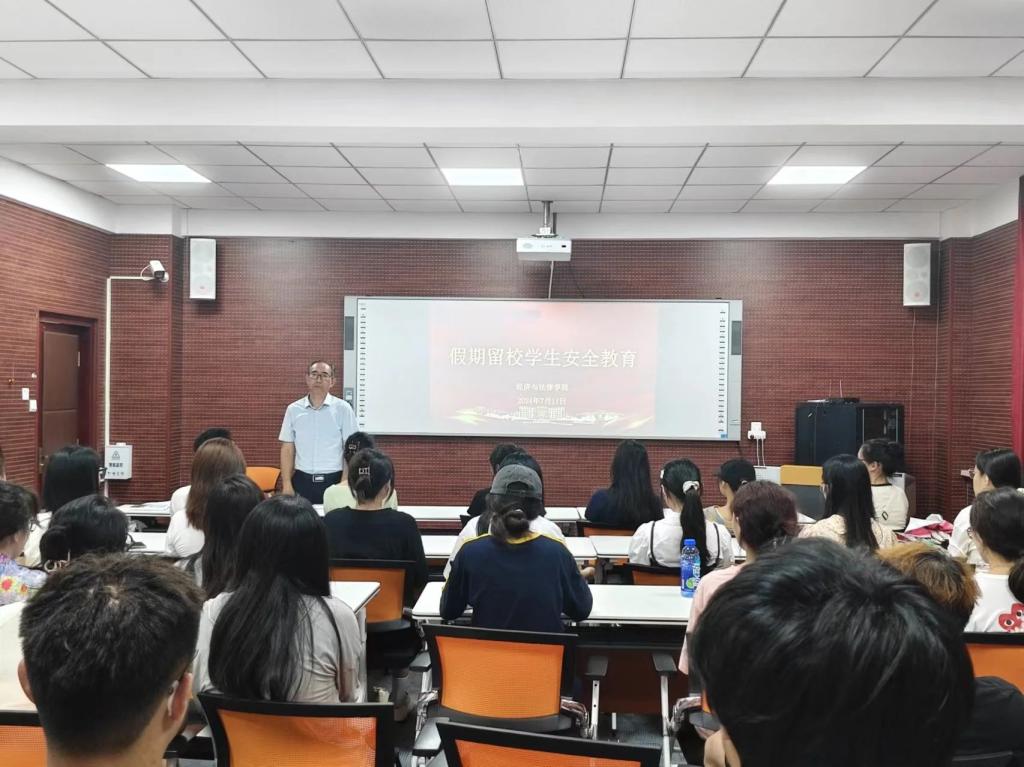 为提高假期留校学生的安全意识,预防安全事故的发生,7月11日,经法学院于博识楼A407召开假期留校学生安全教育会。学院党委书记赵智博、党委副书记张国华、学办主任齐艳萍及各年级假期留校学生参加了会议。