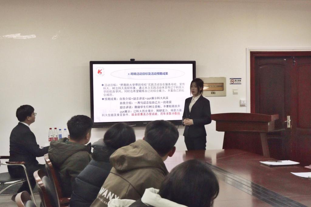 答辩过程中,各团队结合PPT内容从活动背景、活动目的、宣传效果等方面对实践成果进行展示,表达了对实践经历和答辩内容的深入思考以及团队见解,条理清晰,逻辑缜密。在实践过程中,各团队实践形式多样、实践内容丰富、实践成果丰硕,围绕学校的办学理念、教学成果、师资力量等进行宣传,展示了辽科大丰硕的育人成果与鲜明的办学特色,激发了高中学子对辽科大的浓厚兴趣,更点燃了高中学子的学习热情,成功构筑起高中与大学的交流桥梁。最后,张鹏飞作总结发言,他首先肯定了同学们在本次社会实践中所取得的成果,并对同学们开展活动中存在的问题提出了改进建议,同时指出,“把我的大学带回母校”寒假社会实践活动将大学生社会实践与招生宣传工作有机融合,既锻炼了学生的综合能力,也有利于提升学校招生宣传的广度、深度和温度。他表示,希望各团队能继续保持对社会实践及宣传美好科大的热情,在火热实践中绽放青春绚丽之花。