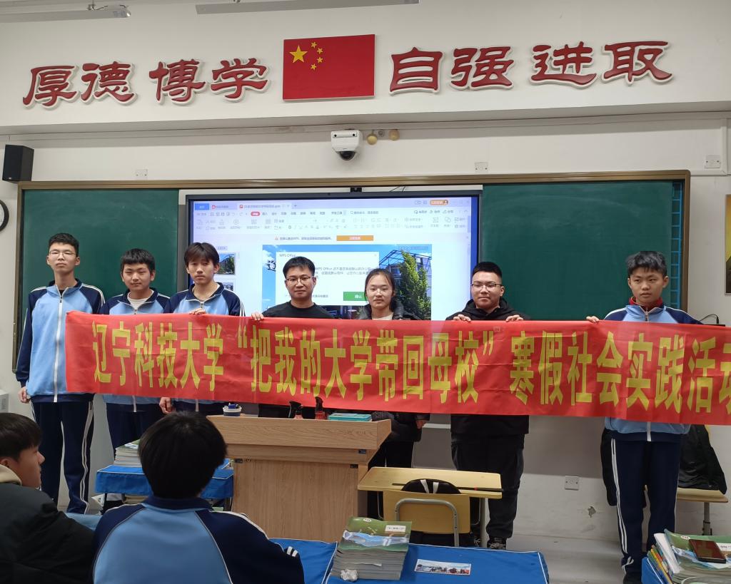 1月13日-1月25日,杜子俊、于子超、王美润、陈俊如、金玥汐5名团队成员分别前往衡水市第二中学、沈阳市第一二四中学、吉林市第一中学、凤城市第二中学以及兴城市高级中学,进行“把我的大学带回母校”寒假社会实践活动。