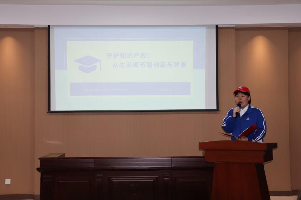 本次宣讲以详实案例与权威数据为切入点,深度剖析知识产权保护的现实意义。贾若彤通过“影院盗摄”“盗版教材”等典型案例,揭示日常行为中的法律边界,明确指出未经许可拍摄或传播影视作品、使用盗版书籍等行为不仅构成民事侵权,更将动摇创新生态根基。她强调,知识产权保护不存在“无意豁免”,任何侵权行为都需承担相应法律责任,同时呼吁同学们从遵守影院提示、选购正版、尊重原创等日常行为做起,守护创新土壤。