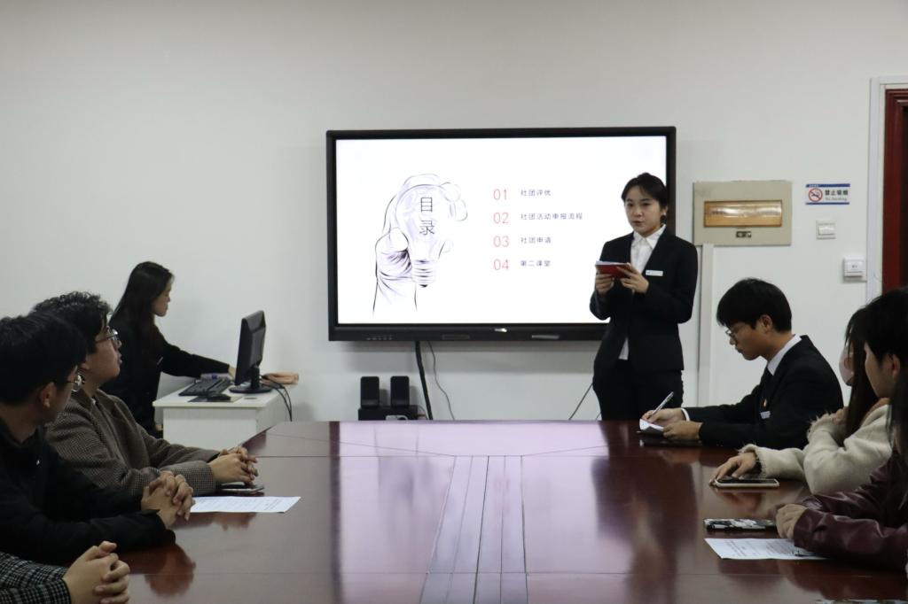 会上,学院团委实践与社团指导中心副主任宋昕从社团评优细则及程序、活动申报流程、第二课堂加分及社团管理精髓四大方面进行了详细介绍。她表示,要明确社团的定位和目标,营造特色鲜明的活动氛围,努力打造“精品学生社团”和“飞跃学生社团”。同时鼓励社团成员之间要积极交流与协作,灵活运用创新思维,不断调整并优化社团运作模式,携手并进展示社团特色风采。在社团申报流程方面,宋昕分别从申报材料、资金申报等方面进行了详尽的阐述,帮助社团成员全面了解申报过程中的注意事项和流程要求。她强调,第二课堂加分项目不仅能够有效激发学生参与实践活动的热情,还能为社团的持续发展提供强大的吸引力。