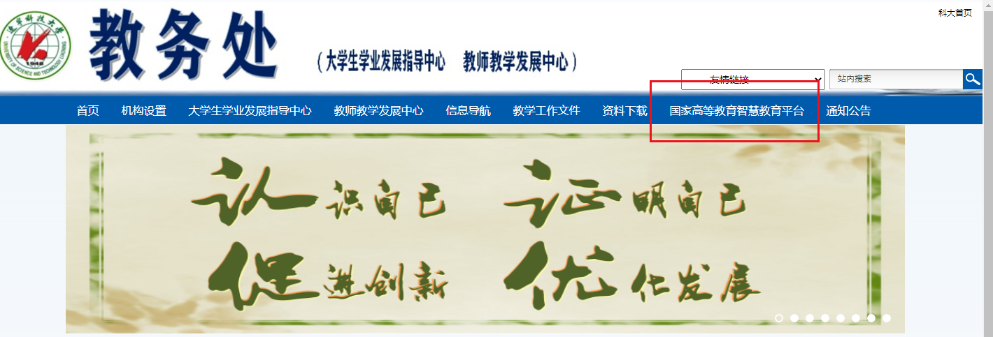 第一步,登录国家高等教育智慧教育平台,并点击“专题”,地址为:https://higher.smartedu.cn///higher.smartedu.cn/,或通过学校教务处主页跳转链接。
