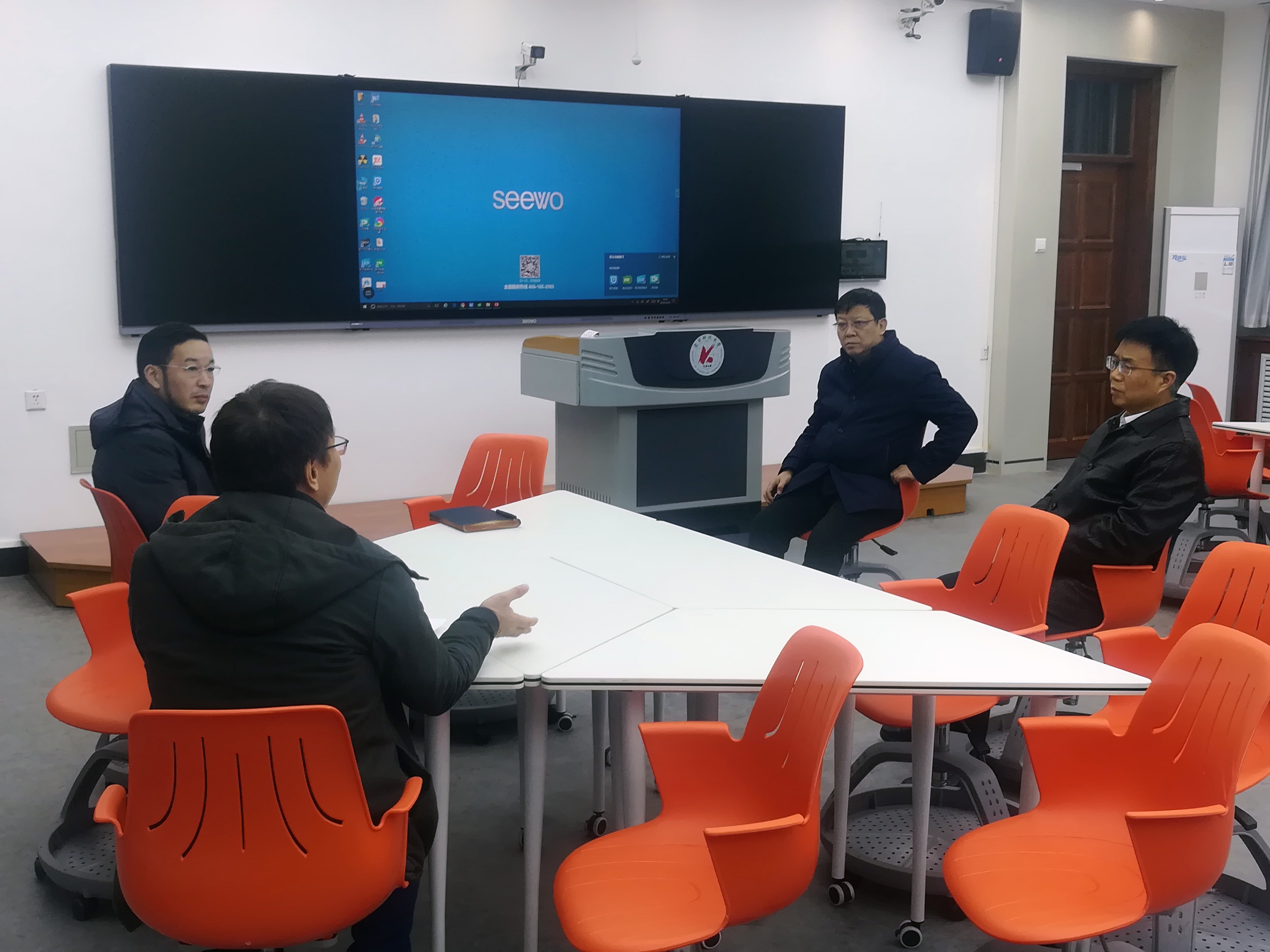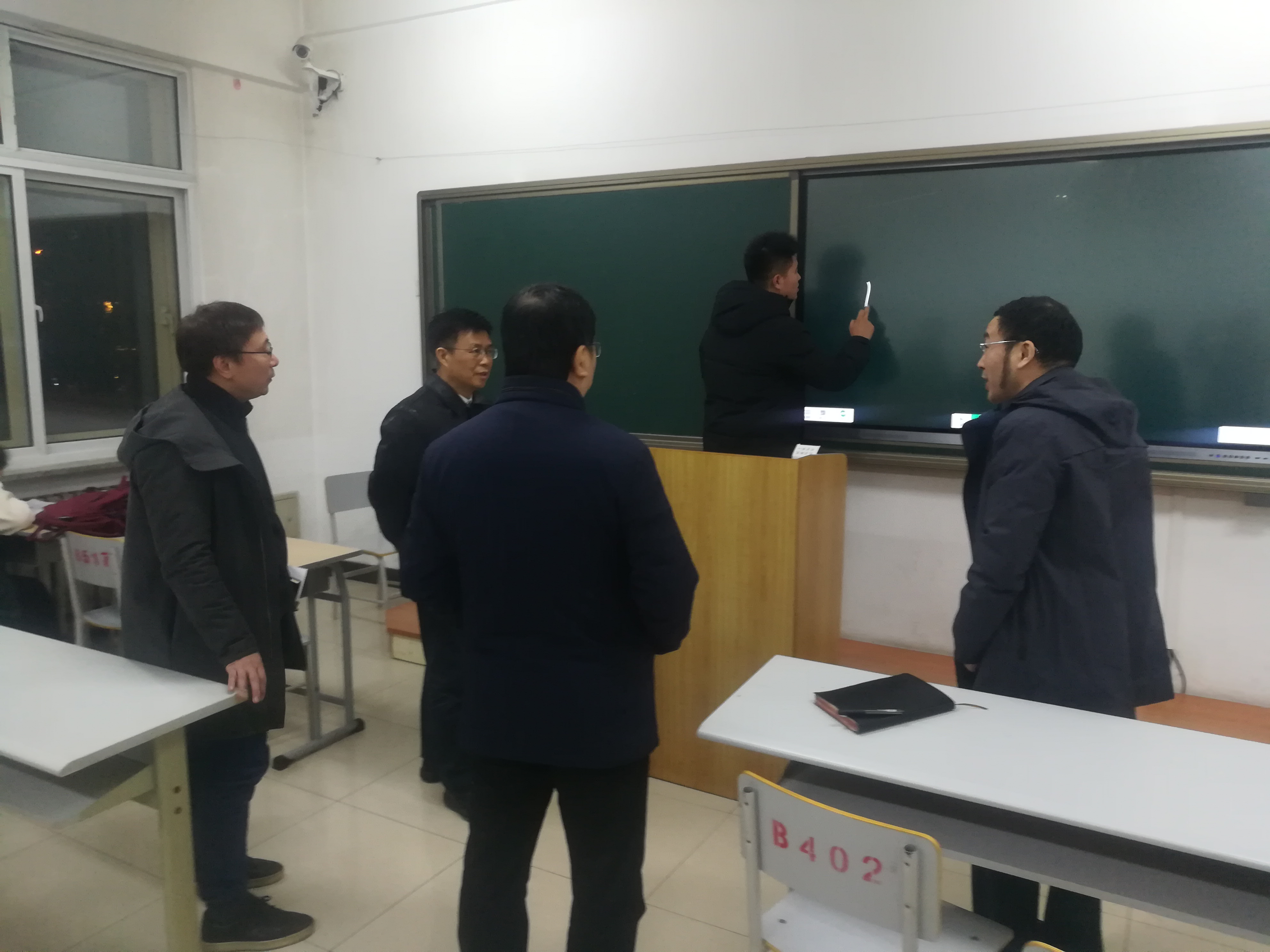 12月11日,安博官网线上平台党委书记李平、校长张志强在教务处负责同志陪同下来到博学楼新建成的智慧教室,听取了教务处同志对智慧教室的建设情况。