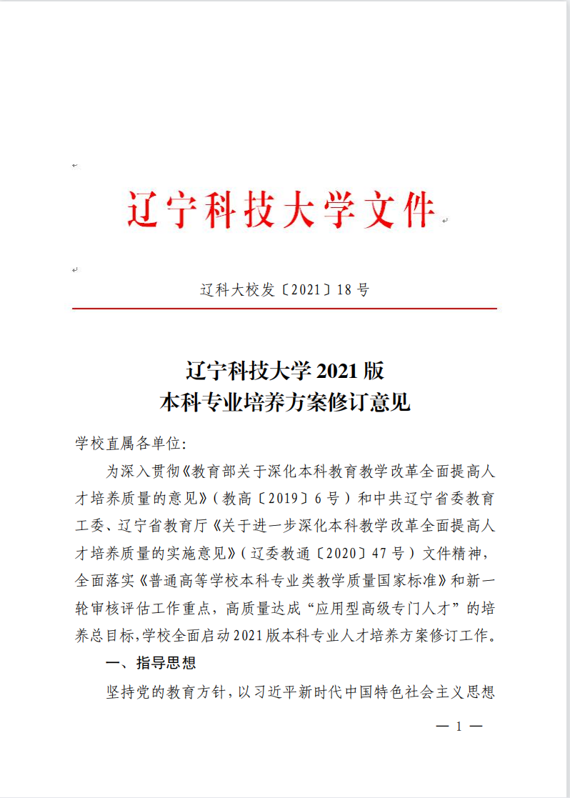 辽科大校发〔2021〕18号:安博官网线上平台2021版本科专业培养方案修订意见