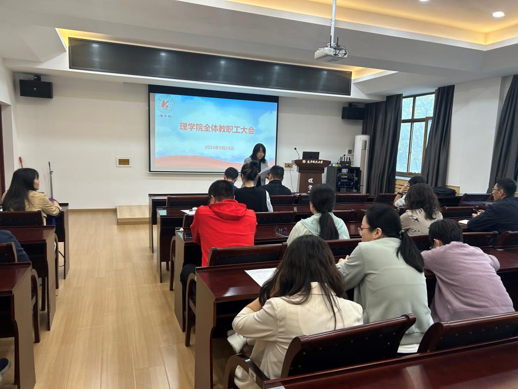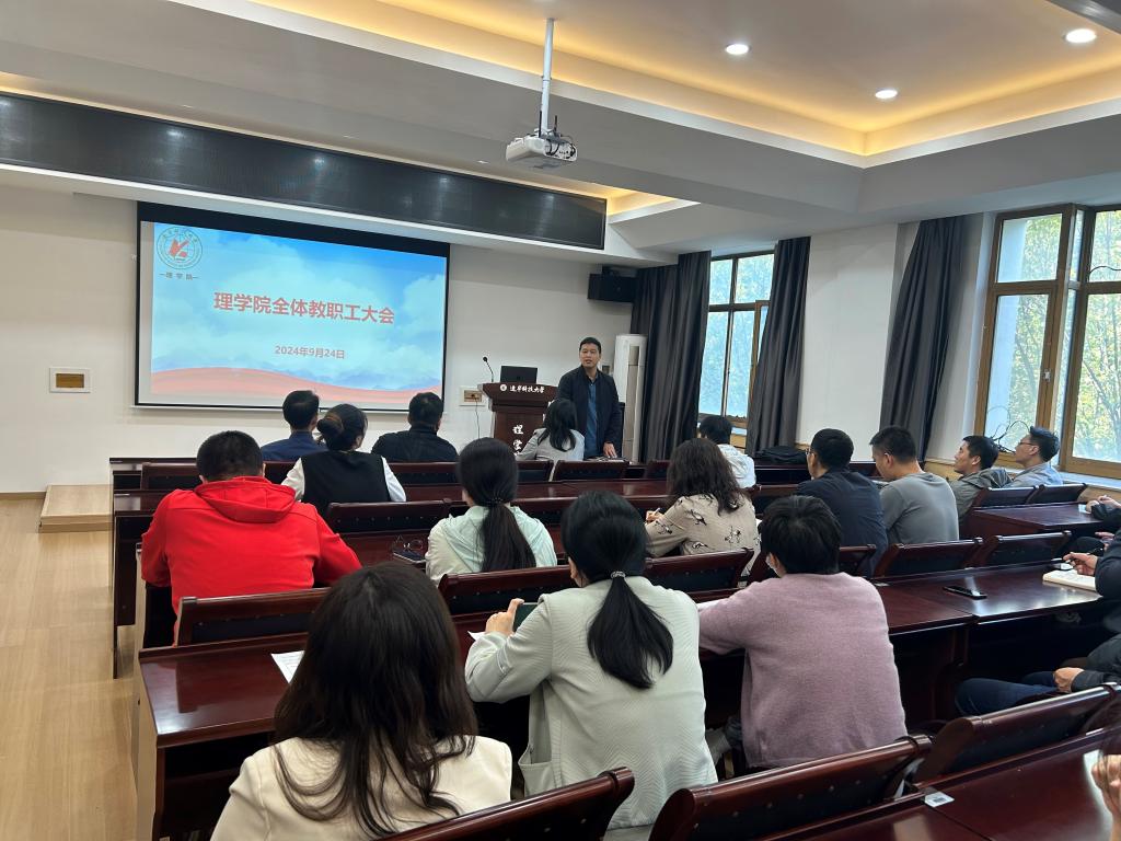 2024年9月24日,安博官网线上平台理学院在明贤楼B315会议室召开了全院教职工大会。会议由理学院党委书记张春霞主持,全院教职工参加会议。