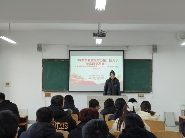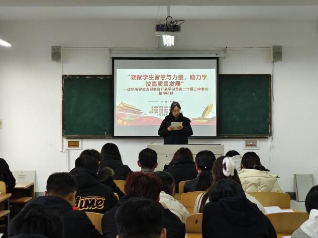 12月3日下午,理学院学生党支部在明贤楼B402联合召开“学习贯彻党的二十届三中全会精神”专题研讨会,旨在为深入贯彻党的二十届三中全会精神,凝聚学生智慧与力量,推动学校高质量发展。会议由学生光学光电党支部书记万晴晴同志主持。