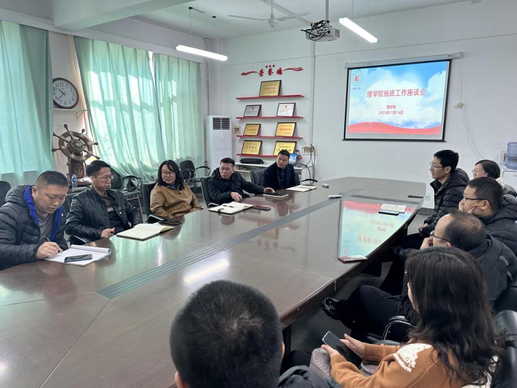 11月14日上午,理学院在明贤楼B311会议室召开统战工作座谈会,学院领导班子及民主党派代表人士参会,本次座谈会由张春霞书记主持。