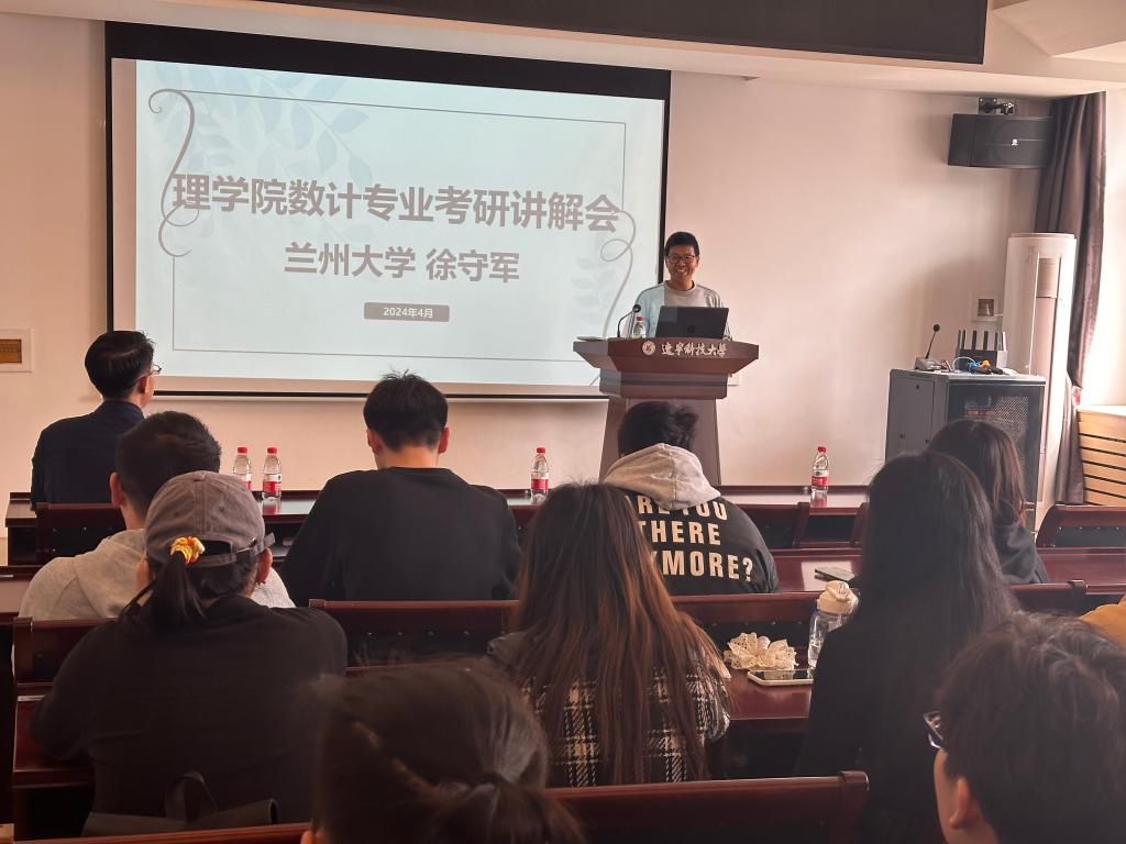为让广大学生进一步明晰考研政策和趋势,培育浓厚考研氛围,理学院于4月份第二周开展考研政策宣讲活动,东北大学胡勇教授和兰州大学徐守军教授应邀为理学院学子做辅导报告,传授考研备考经验,理学院院长屠良平,党委副书记侯立臣以及2021级学生参加。