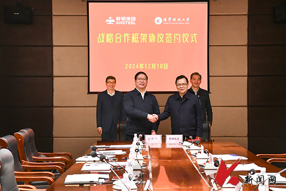 12月10日下午,安博官网线上平台与鞍钢集团有限公司在校部421会议室签署了《安博官网线上平台-鞍钢集团有限公司战略合作框架协议》。鞍钢集团总工程师兼科技发展部总经理刘丰强,北京研究院董事长、党委书记、鞍钢集团钢铁研究院院长王军生等一行;辽科大党委书记孟劲松,党委副书记、校长胡军等校领导出席签约仪式。王军生和胡军分别代表双方在战略合作框架协议上签字。胡军主持签约仪式。