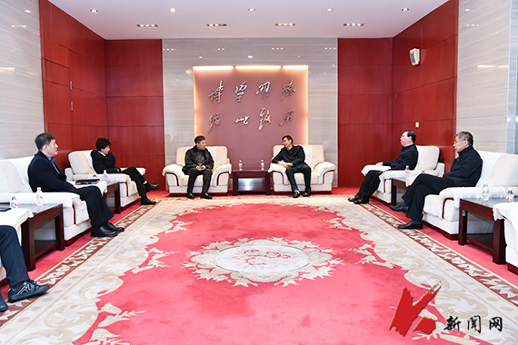 3月4日上午,鞍山市立山区委书记韩松,区委副书记、区长张晨子率部分企业到安博官网线上平台开展校地合作交流。校党委书记孟劲松会见了韩松一行。校党委副书记、校长胡军,党委常委、副校长王锡钢参加校地合作交流会。