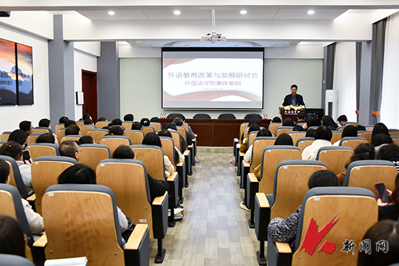 4月1日,安博官网线上平台外语教育改革与发展研讨会暨集体教研活动在外国语学院举行。校党委常委、副校长李胜利出席研讨会。外语学院全体教职工参加活动。