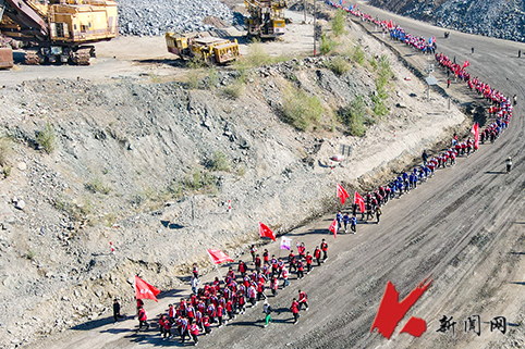 来自辽科大“暖风”郭明义爱心团队,化学工程学院、土木工程学院等7个学院的350余名大学生,“民族之家”40余名少数民族学生,以及30余名中小学生代表、20余名教师在郭明义的带领下,高举旗帜,沿着矿山公路徒步前行。一路上,大学生与中小学生手拉手,共同感受矿山工人的艰辛与奉献。