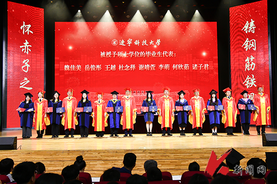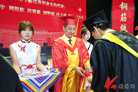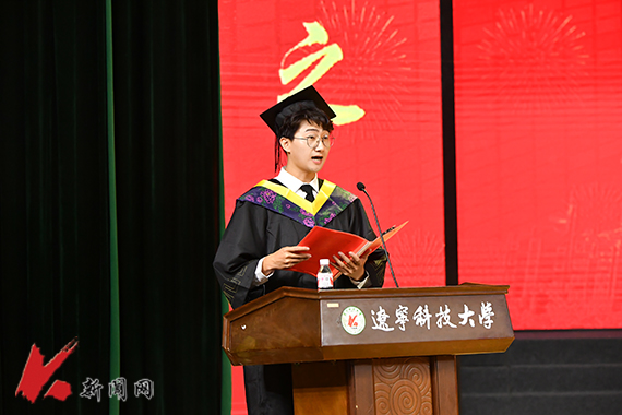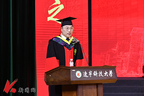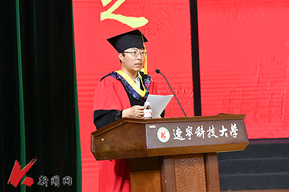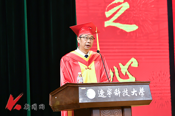 胡军代表全校师生员工向即将扬帆起航的全体毕业生致以热烈的祝贺。胡军说,几年前,你们选择了辽科大这座铸就梦想的熔炉,在这里学习知识、磨砺意志、结交朋友、塑造自我;你们把最美好的青春留在了这里,用勤勉与智慧在青春答卷上镌刻了属于辽科大人的时代印记。临别在即,胡军勉励毕业生们要牢记“打铁还需自身硬”的人生哲理,并向大家提出三点期许。
