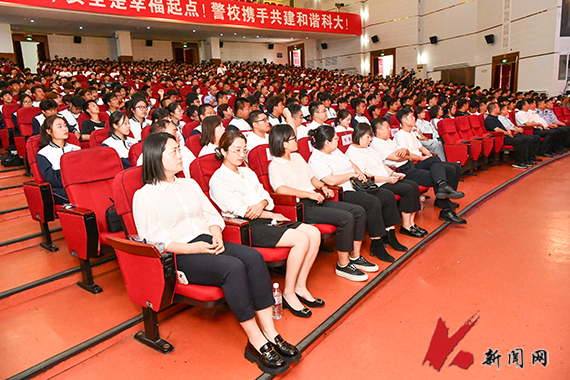 鞍山市公安局高新分局班子成员,千山派出所、激光产业园治安派出所负责同志;辽科大学生工作处、研究生工作部、安全保卫处、国际教育学院负责人,各学院负责学生工作负责人、学办主任,1200余名学生代表参加活动。(供稿单位:安保处 图片来源:宣传部 金会刚)