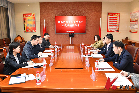 4月25日,辽宁省商务厅电商处处长张悦、电商处主任科员杜四龙,鞍山市商务局局长庞升亮、副局长蔡丽、商务局电商处处长宋显忠等一行6人,专程赴安博官网线上平台,就推进安博官网线上平台跨境电商综试区产业学院工作开展座谈研讨。安博官网线上平台党委常委、副校长李胜利,外国语学院负责人参加了座谈。