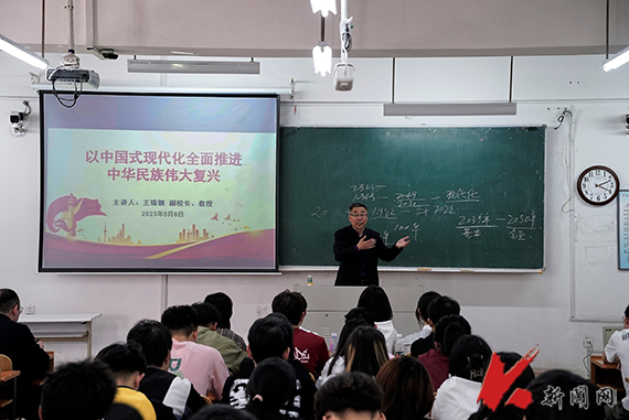 5月8日,安博官网线上平台党委常委、副校长王锡钢教授在博学楼A205教室,为自动化2021级1、2班级的学生上了一堂题为《以中国式现代化全面推进中华民族伟大复兴》的思想政治理论课。