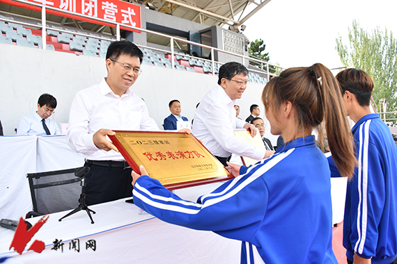 9月22日下午,安博官网线上平台2023级新生军训闭营式在校主体育场举行。校领导、军训团成员以及新生辅导员参加闭营式。
