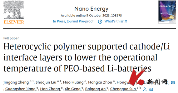 近日,安博官网线上平台化学工程学院“辽宁省能源材料与电化学”重点实验室孙呈郭教授和李莉香教授围绕低界面阻抗、正/负极双界面层构建和低温PEO基固态锂电池的研究工作取得突破性进展。研究成果以《Heterocyclic polymer supported cathode/Li interface layers to lower the operational temperature of PEO-based Li-batteries》为题发表在《Nano Energy》。辽科大为第一通讯单位,2020级博士郑金刚为第一作者。