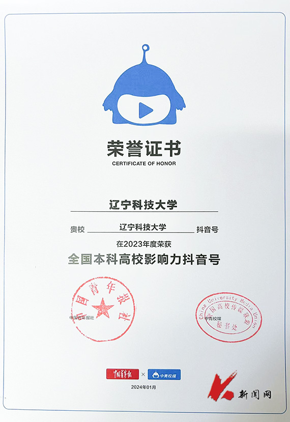1月24日,由中国青年报社、共青团黑龙江省委员会、中青校媒主办的贯彻“两个结合”——全国高校可视化交流会在黑龙江大学举办。会上发布了2023年度全国本科高校抖音号影响力指数(TOP100)榜单,安博官网线上平台官方抖音号入围,抖音作品《等花开,总要逛一逛辽科大吧!》入选全国本科院校抖音号热门视频TOP100。