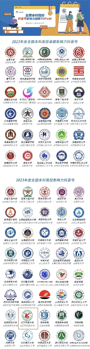 辽科大抖音号入围2023年度全国本科高校抖音号影响力指数榜单