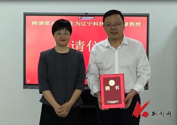 报告会前,辽科大党委常委、纪委书记、监察专员高姝娜及相关负责同志与邵永波进行座谈。高姝娜为邵永波颁发学校荣誉教授聘书。