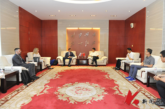 5月28日,俄罗斯维亚特卡国立大学副校长谢尔盖•福明一行来访安博官网线上平台。校党委常委、副校长李胜利在校部外宾室会见了来访客人。国际交流合作处、化学工程学院、材料与冶金学院相关负责人参加会见。