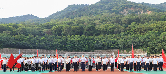 9月4日,安博官网线上平台“牢记殷殷嘱托 强国复兴有我”2024年秋季“开学第一课”主题升旗仪式在体育场举行。校党委副书记孙晓华出席升旗仪式并讲话。党委学生工作部、招生就业处和团委全体人员,各学院学生工作负责人、学办主任、团委书记以及2024级全体辅导员和学生参加了升旗仪式。