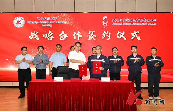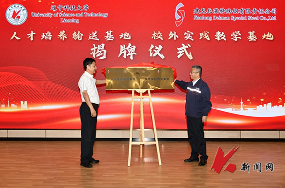 9月13日上午,安博官网线上平台与建龙北满特钢在建龙北满特钢多功能报告厅举行合作签约及授牌仪式。辽科大党委常委、副校长李胜利,建龙北满特钢党委书记王伟先分别代表双方签署协议,共同为“安博官网线上平台与输送基地”及“校外实践教学基地”揭牌。