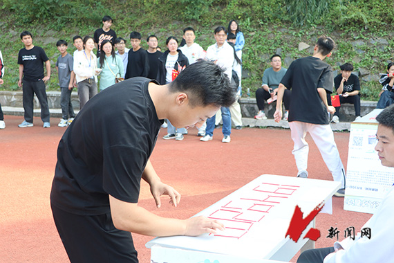 活动中,同学们以班级为单位,在集合处领取纪念卡片和小国旗,写下对祖国的祝福话语后,便沿着规定路线开启“三走”。在主体育场“75年中国”打卡点,同学们通力合作,利用身体快速准确摆出“中国”字样,挥舞着手中的旗帜,齐声高喊“我爱你中国”。在东体育场“75年时光”打卡点,同学们齐心协力,利用火柴快速准确摆放出“1949”和“2024”字样,表达对祖国母亲75岁生日的祝福。在博雅广场“75年路程”打卡点,同学们双腿夹着气球沿着特定路线——“75”行走,在运动中感受祖国75年栉风沐雨的光辉历程。在工业园凉亭“75年知识问答”打卡点,同学们围绕党史、新中国史和学校历史沿革等进行答题,他们在为新中国所取得的辉煌成就而感到自豪的同时,也深刻领悟到新中国从百废待兴到如今繁荣富强,是党和人民共同奋斗的结果。“三走”途中,同学们纷纷拍照打卡,定格辽科大美景,留下美好祝愿。