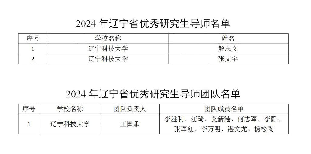 辽科大2名教师获评2024年辽宁省优秀研究生导师,1个团队获评优秀研究生导师团队