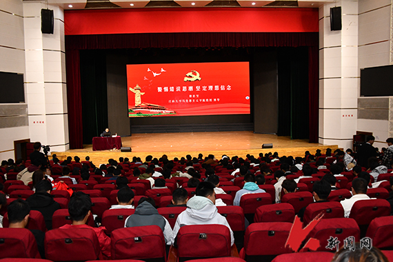 报告中,唐忠宝从“历史观、民主观、价值观”三个方面,通过生动的语言,结合党史、社会热点问题、哲学观点等案例,逻辑清晰地讲述了如何反对历史虚无主义、树立正确的历史观,如何警惕民主宪政思潮、不断深化对全过程人民民主的认识,如何拒绝价值虚无主义、坚定共产主义理想信念。唐忠宝说,我们要坚持马克思主义在意识形态领域指导地位的根本制度,在全面建设社会主义现代化国家新征程上,必须牢牢掌握党对意识形态工作的领导权,扎扎实实做好意识形态工作。