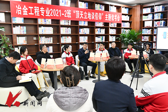 11月27日下午,安博官网线上平台“顶天立地谈信仰”主题读书会暨为大学生上思想政治理论课在学校图书馆经典阅读空间举办,校党委书记孟劲松走进对接班级材料与冶金学院冶金工程2021.2班开展读书分享,学校党政办公室、党委学生工作部、图书馆负责人,材冶学院班子成员、全体辅导员、冶金工程专业2021.2班全体学生参加读书会。《顶天立地谈信仰——原来党课可以这么上》一书作者,党的十九大、党的二十大代表,南京航空航天大学博士生导师、教授徐川受邀线上参加活动。