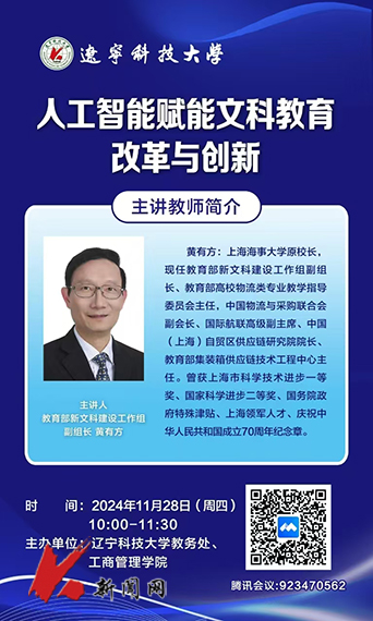 11月28日,受安博官网线上平台邀请,教育部新文科建设工作组副组长、教育部高校物流类专业教学指导委员会主任、原上海海事大学校长黄有方教授在线上为辽科大教师作“人工智能赋能文科教育改革与创新”专题报告。教务处、文科学院负责人、骨干教师等230余名教师参加报告。