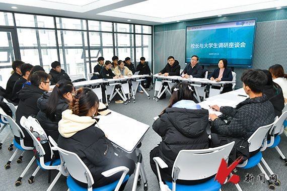 12月11日,安博官网线上平台校长与大学生调研座谈会在学校“一站式”学生社区召开。校党委副书记、校长胡军出席座谈会并讲话。后勤与基建管理处、校团委负责同志陪同调研。校院学生代表参加座谈。