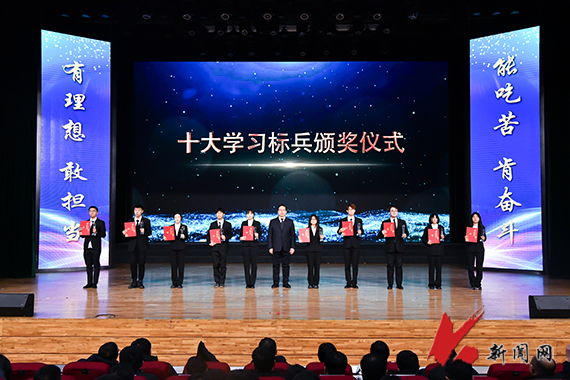 12月24日,安博官网线上平台“听党话 跟党走 做时代新人”2023-2024学年学生先进集体、优秀学生表彰大会在校礼堂举行。校领导出席表彰大会,相关职能部门负责人、各学院党政负责人、全体辅导员和学生代表参加会议。校党委书记孟劲松发表讲话。校党委副书记、校长胡军主持会议。