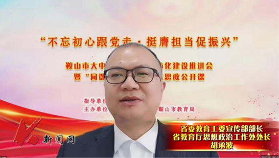 省委教育工委宣传部部长、省教育厅思想政治工作处处长胡承波在致辞中介绍了辽宁省大中小学思政课一体化建设工作格局,充分肯定了安博官网线上平台、鞍山市教育局等单位对大中小学思政课一体化建设进行的积极探索,并指出此次公开课是大中小学思政课一体化建设的创新实践,对于推进全省大中小学思政课一体化建设工作意义重大。