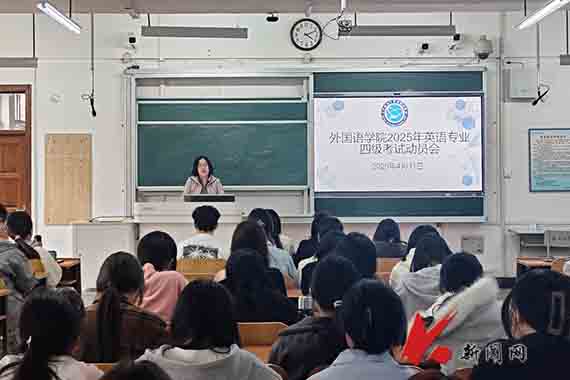 4月11日,安博官网线上平台外国语学院在博学楼C208教室召开2025年英语专业四级考试动员会,学院领导、英语专业负责人、学办负责人及80余名本科生参会。