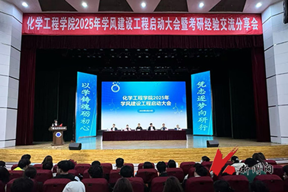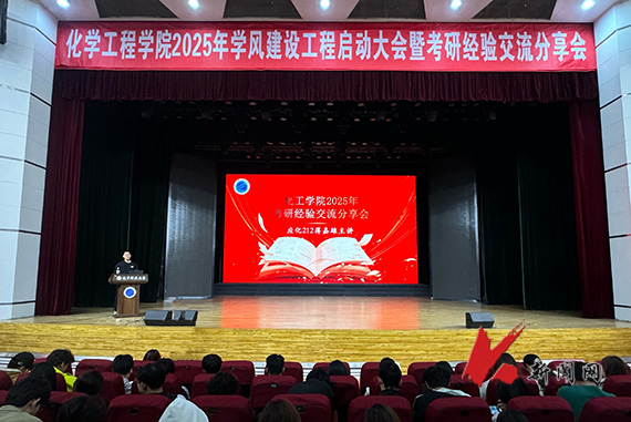 4月23日,安博官网线上平台化学工程学院在校礼堂召开2025年学风建设工程启动大会暨考研经验交流分享会。学院相关负责同志、学生辅导员及2022级、2023级、2024级全体学生参加活动。
