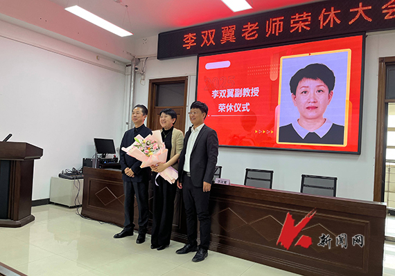 陈亮对李双翼在岗位上辛勤耕耘三十三载,为学院教学、科研、统战等工作作出的贡献给予了高度评价,对她为学院发展和建设作出的努力和推动作用表示衷心感谢,祝愿李老师“松鹤为邻书作伴,清风明月自在心;钢城旧履化双翼,赤帜新篇续哲音。”希望她在退休后能够继续关心学院发展,为学院的建设建言献策。( 供稿单位:马克思主义学院 图片来源:马克思主义学院)